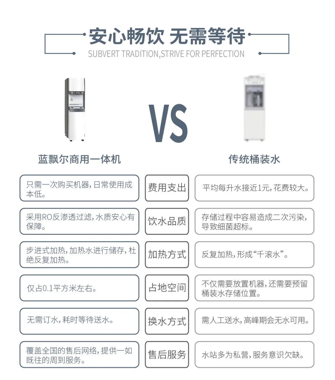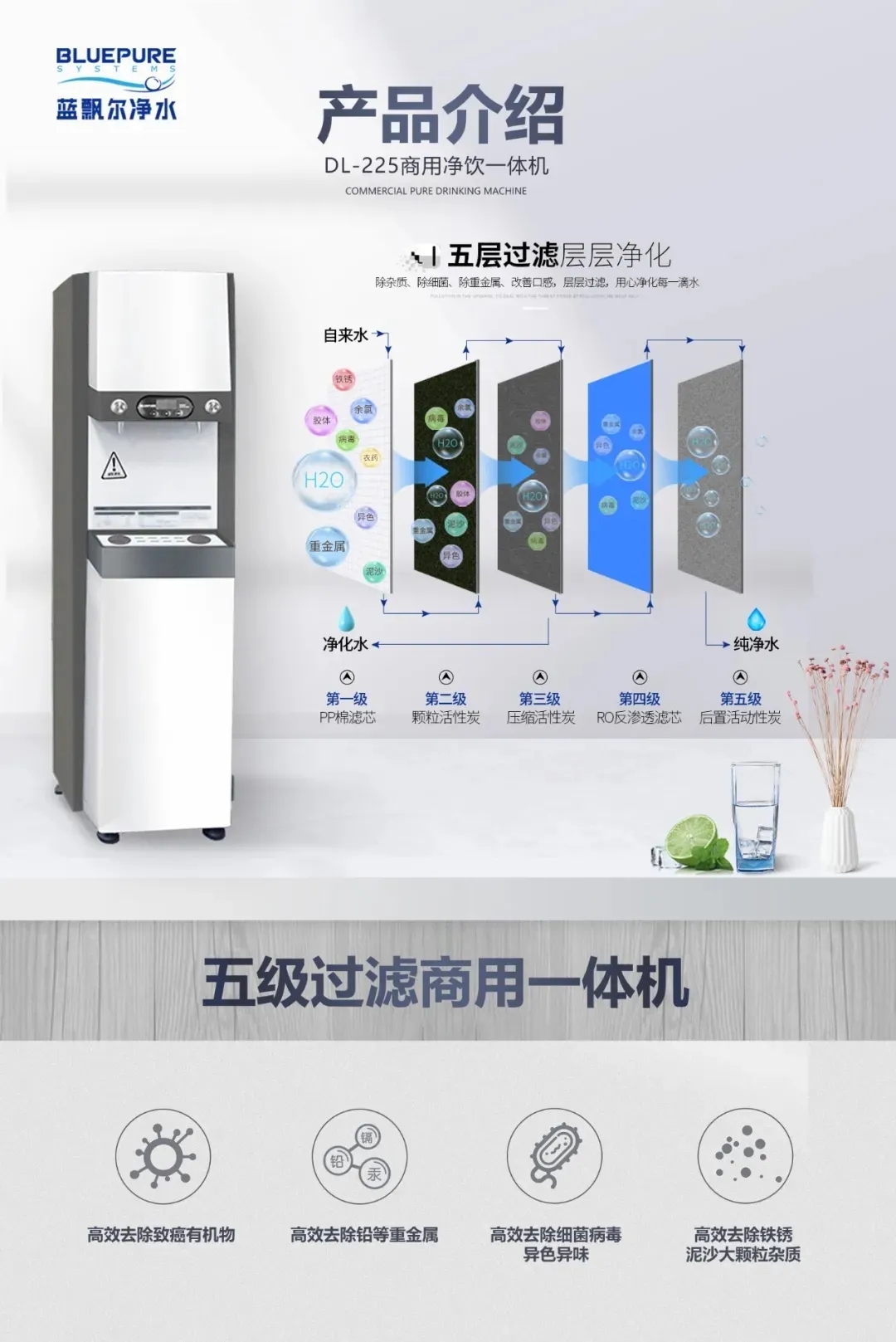 可滿足每個飲水點位50-150人以上直飲水(開水、常溫水)需求的凈水產(chǎn)品,提供新鮮、安全、衛(wèi)生且達到國家要求的水,兩種通量可選,體積小,不占地,美觀實用又安全!