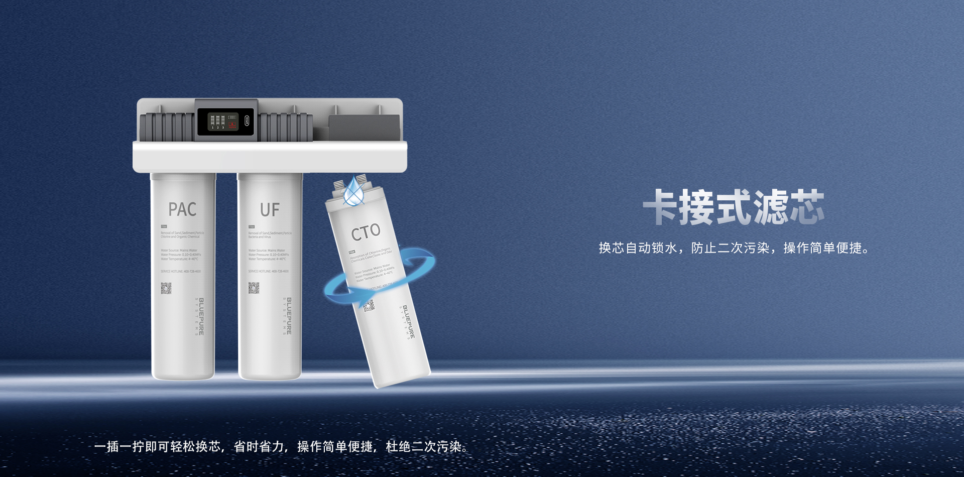 換芯自動鎖水,防止二次污染;