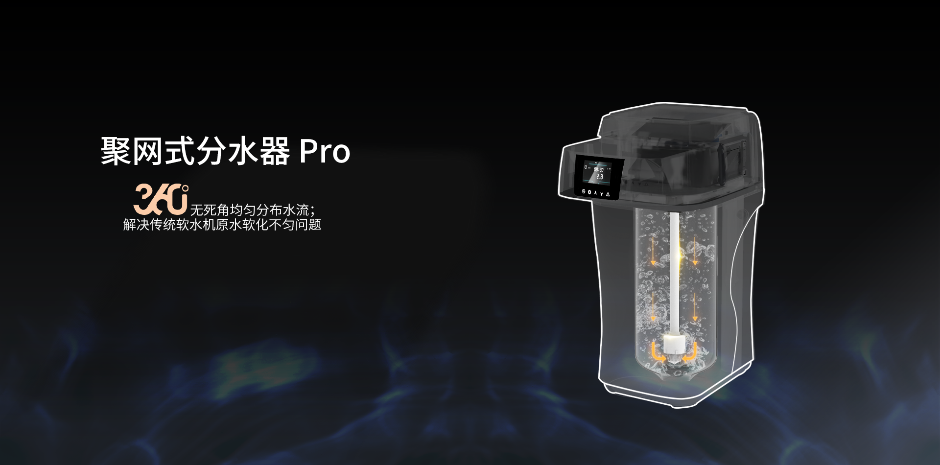 再搭配上聚網(wǎng)式分水器,至臻系列中央軟水機能夠360°無死角均勻分布水流,解決傳統(tǒng)軟水機源水軟化不勻問題。