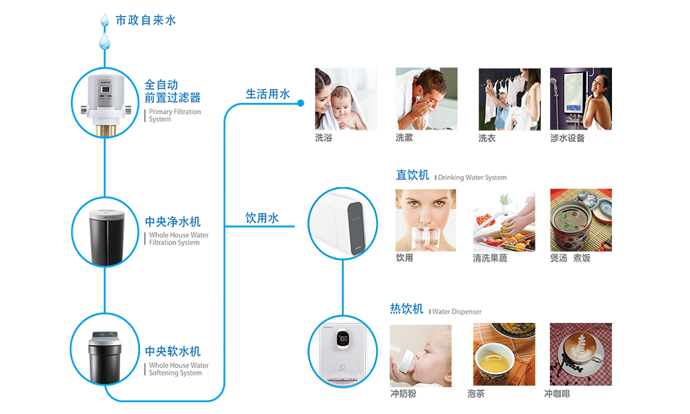 洗臉?biāo)煤罂梢韵茨_、沖廁所;家中廢水可用來沖廁所;淘米水、煮過面條的水可用來洗碗筷,具有去油效果;養(yǎng)魚的水澆花,能促進(jìn)花木生長。藍(lán)飄爾全屋凈水系統(tǒng)可有效將過濾廢水再利用沖廁所、澆花、洗車,最大化高效、節(jié)約用水。