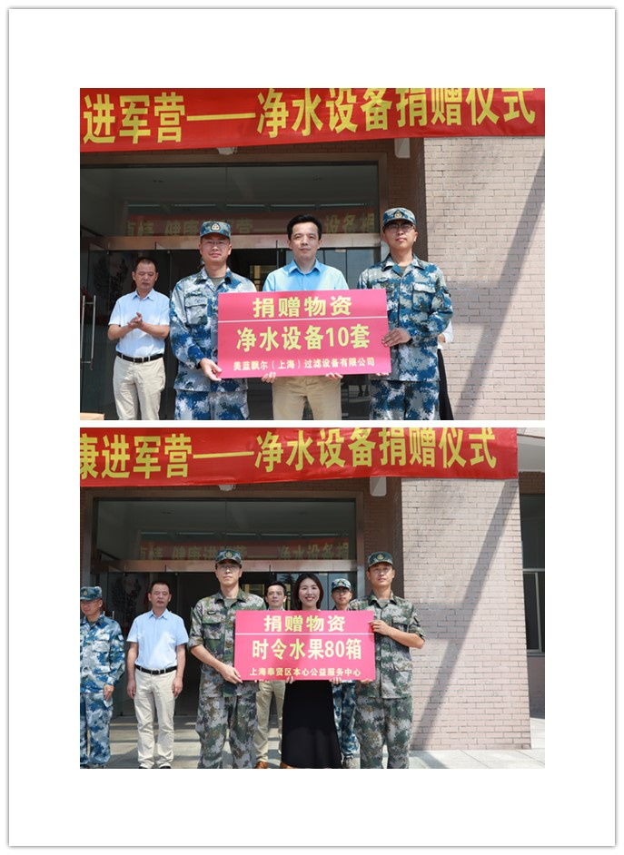 捐贈(zèng)儀式上,區(qū)退役軍人事務(wù)局副局長(zhǎng)、區(qū)雙擁辦常務(wù)副主任黃宣明對(duì)上海奉賢區(qū)本心公益服務(wù)中心、美藍(lán)飄爾(上海)過(guò)濾設(shè)備有限公司的愛(ài)心捐贈(zèng)表示肯定和感謝。此次捐贈(zèng)既改善了營(yíng)區(qū)生活設(shè)施,又感受到了社會(huì)組織對(duì)部隊(duì)的關(guān)心關(guān)愛(ài),更激勵(lì)了他們獻(xiàn)身國(guó)防、保家衛(wèi)國(guó)的信心和決心,表示要在本職崗位上,站好崗、放好哨,苦練精兵、矢志打贏,為譜寫(xiě)強(qiáng)國(guó)夢(mèng)強(qiáng)軍夢(mèng)做出新的更大貢獻(xiàn)。